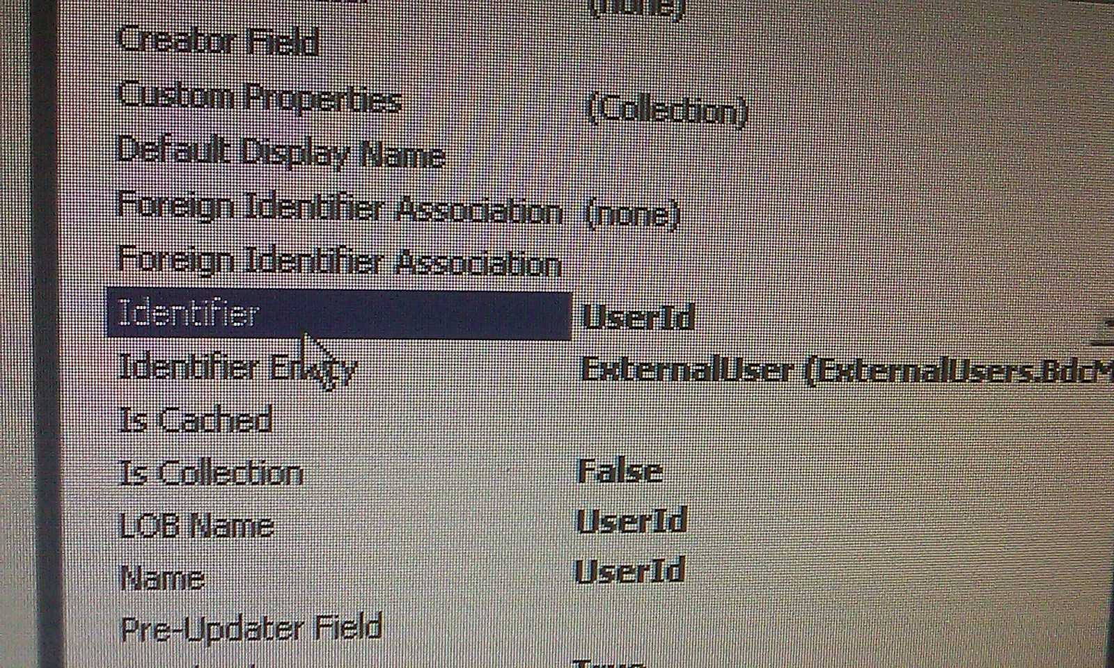 "Error while executing web part: Microsoft.BusinessData.MetadataModel.InvalidMetadataObjectException: There is an error in the TypeDescriptor of Parameteers on Method with Name 'ReadList' on Entity (External Content Type) with Name 'ExternalUser' n Namespace 'ExternalUsers.BdcModel'. The TypeDescriptor incompletely define where the Identifiers of Entity 'ExternalUser' are to be read. That Entity expects exactly '1' Identifiers, but only '0' TypeDescriptor were found from which to read the value them. at Microsoft.SharePoint.BusinessData.Infrastructure.CompositeIdentifier.GetIdentify()................"